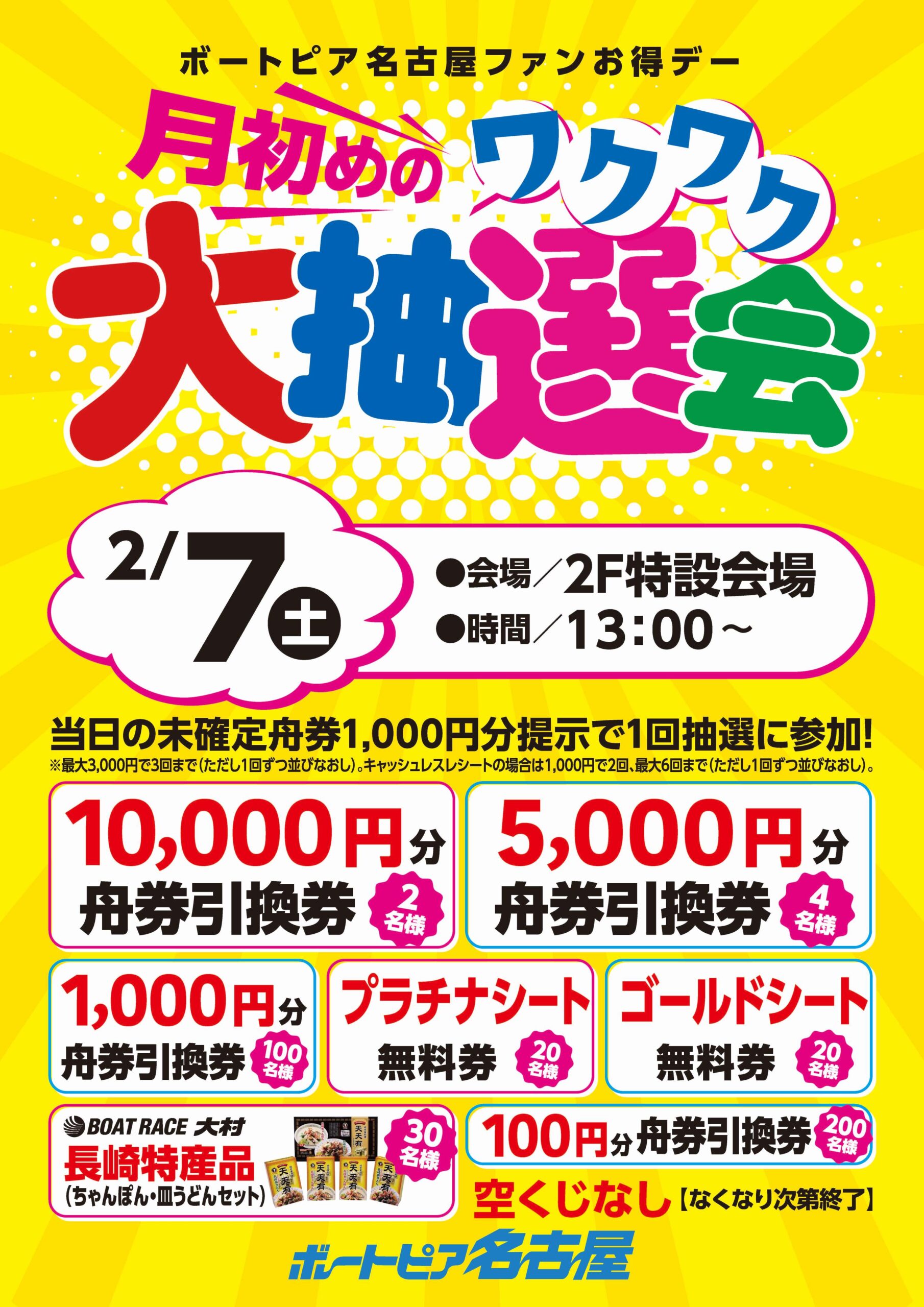 ボートピア名古屋ファンお得デー『月初めのワクワク大抽選会』
