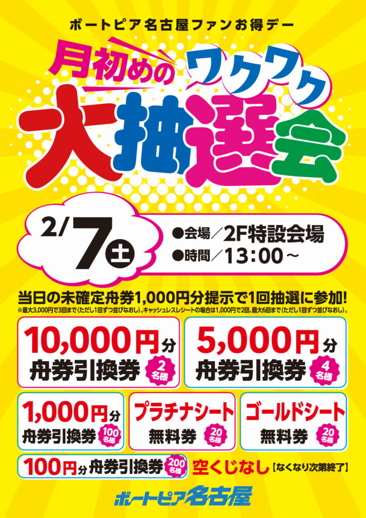 ボートピア名古屋ファンお得デー『月初めのワクワク大抽選会』