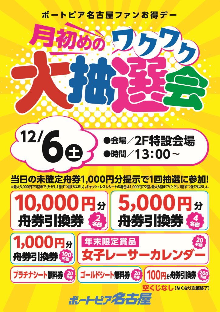 ボートピア名古屋ファンお得デー『月初めのワクワク大抽選会』