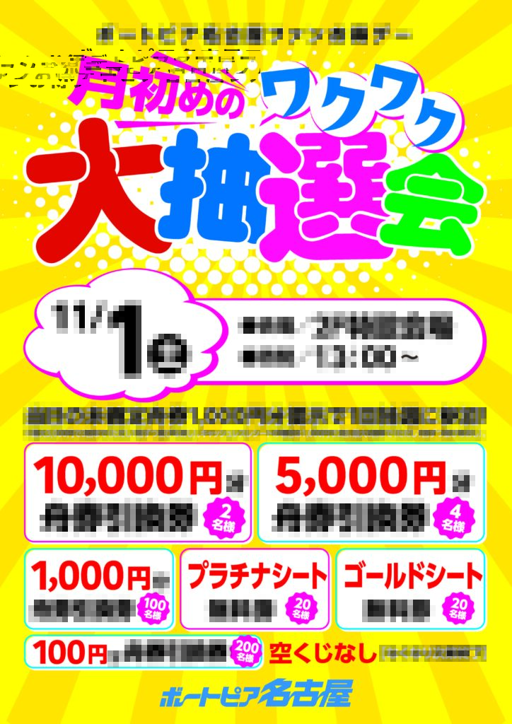 ボートピア名古屋ファンお得デー『月初めのワクワク大抽選会』