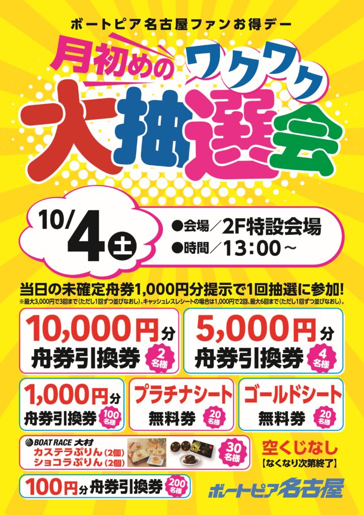 ボートピア名古屋ファンお得デー『月初めのワクワク大抽選会』